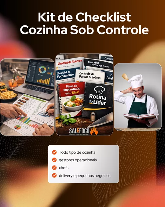 O Kit Cozinha Sob Controle foi criado para donos de restaurante, cafés, bares, cozinhas pequenas, gestores e chefs que sentem a operação desorganizada, a equipe sem padrão e o serviço sempre no limite.